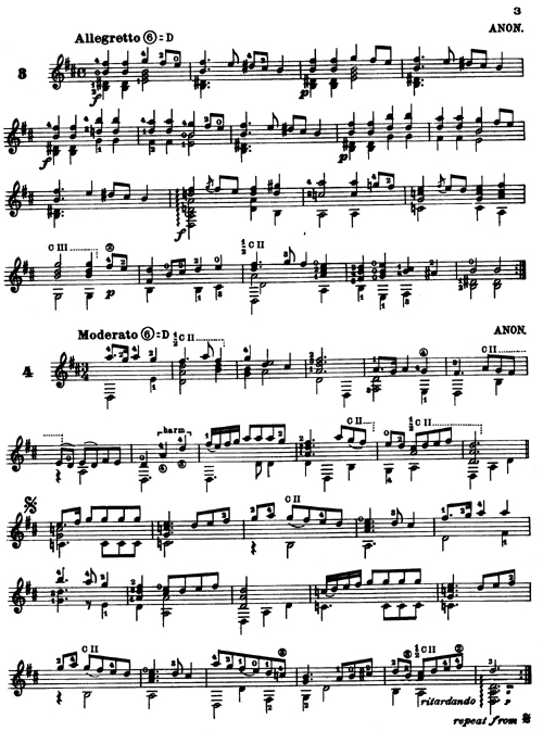 As you could probably assume, the first drop d tuning pieces I ever played were transcriptions of lute pieces by Albert Valdes Blain. I mean the transcriptions were by him, not the lute tunes -- he wasn't that old. In his book 700 Years of Music for the Classical Guitar, and if you can find a copy, grab it, there are six anonymous lute pieces. Taken together, they make an attractive early music selection for the student-recitalist to use in a short program. They aren't show-stoppers, but have a unique charm that makes a first-time foray into a new tuning a pleasant experience. The book has been out of print for years, but was published by Charles Hansen back in the late 1960's. I wish someone would reissue it.