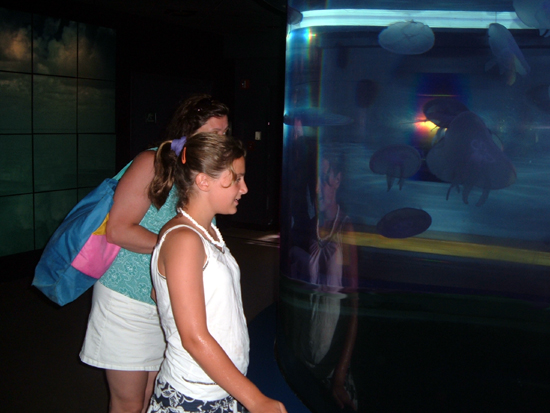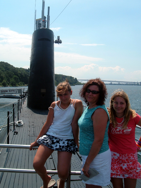 Amanda (front) had only known jelly fish through Sponge Bob cartoons. The day before this picture was taken, she had a run-in with the real thing. Ouch! She wanted to get even with these guys and let the water out of their tank! After a couple of hours, Elaine was ready for a sit-down, so I drove the family down to Exit 86 and the most famous submarine of all time, SSN 571, the Nautilus. Located at the US Submarine Museum, the Nautilus is a must-see for anyone. Touring the boat, one gets an idea of the sheer bravery submariners possess. To imagine sailing this vessel under the North Pole, well, it boggles the mind. While spacious for a submarine, space was still at a premium. Bunks allowed no room for rollign over, they are stacked so closely. Hatches between compartments look ridiculously small. The rooms are populated by origianl equipment and mannequins of sailors to give a real glimpse into life aboard the boat while it was still on partrol.