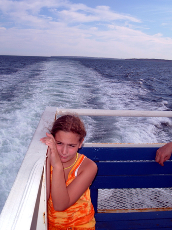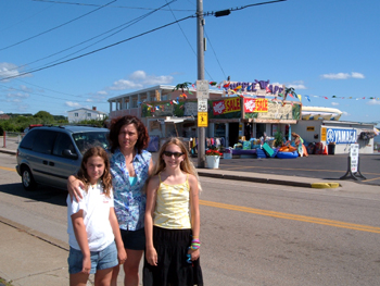 certainly worth the effort. Misquamicut Beach is a small slice of heaven nestled away in a the southwestern corner of Rhode Island near Westerly and Watch Hill. The ocean is still mostly the mouth of Long Island Sound, but there is enough access to the open sea that the water is a much clearer and bluer experience. See the photos, there was no color-shifting in PhotoShop, trust me. The young lady in the photo is holding a shell she had just
