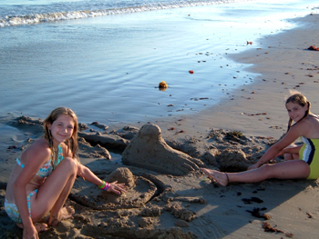 retrieved from the surf -- and was extremely proud of her find. Surf conditions? I'd have to guess that the average high tide breakers were at about the three to four foot size. Not overly intimidating, but good fun for boogie boarding and body surfing.