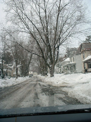 Church on Mohawk Avenue. Below right, a snowy residential